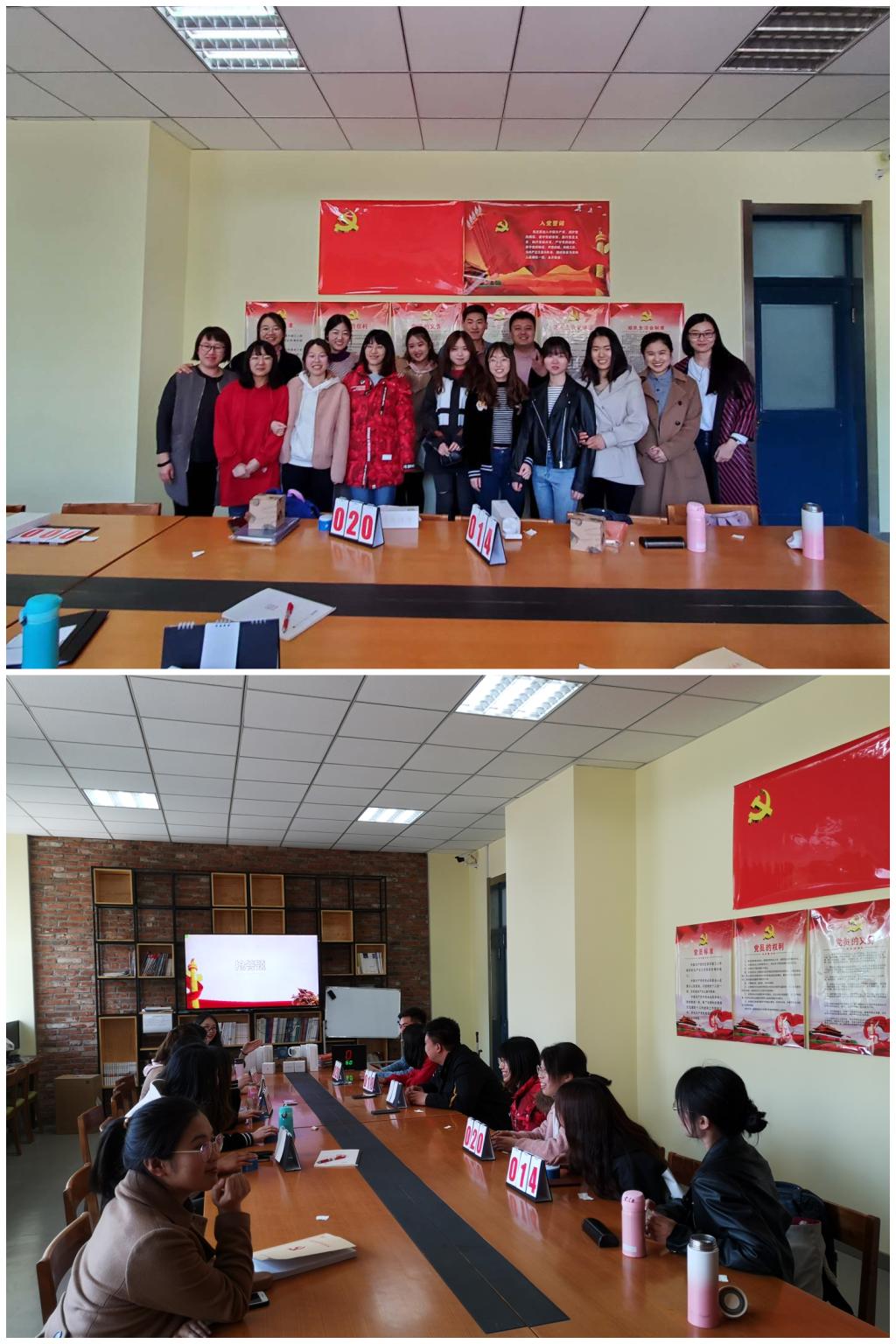 研究生党支部在外语楼101室成功举办“不忘入党初心、争做合格党员”主题知识竞赛。研究生第一党支部书记张雪老师、第三党支部书记张若溪老师全程参与,并与大家进行积极互动。