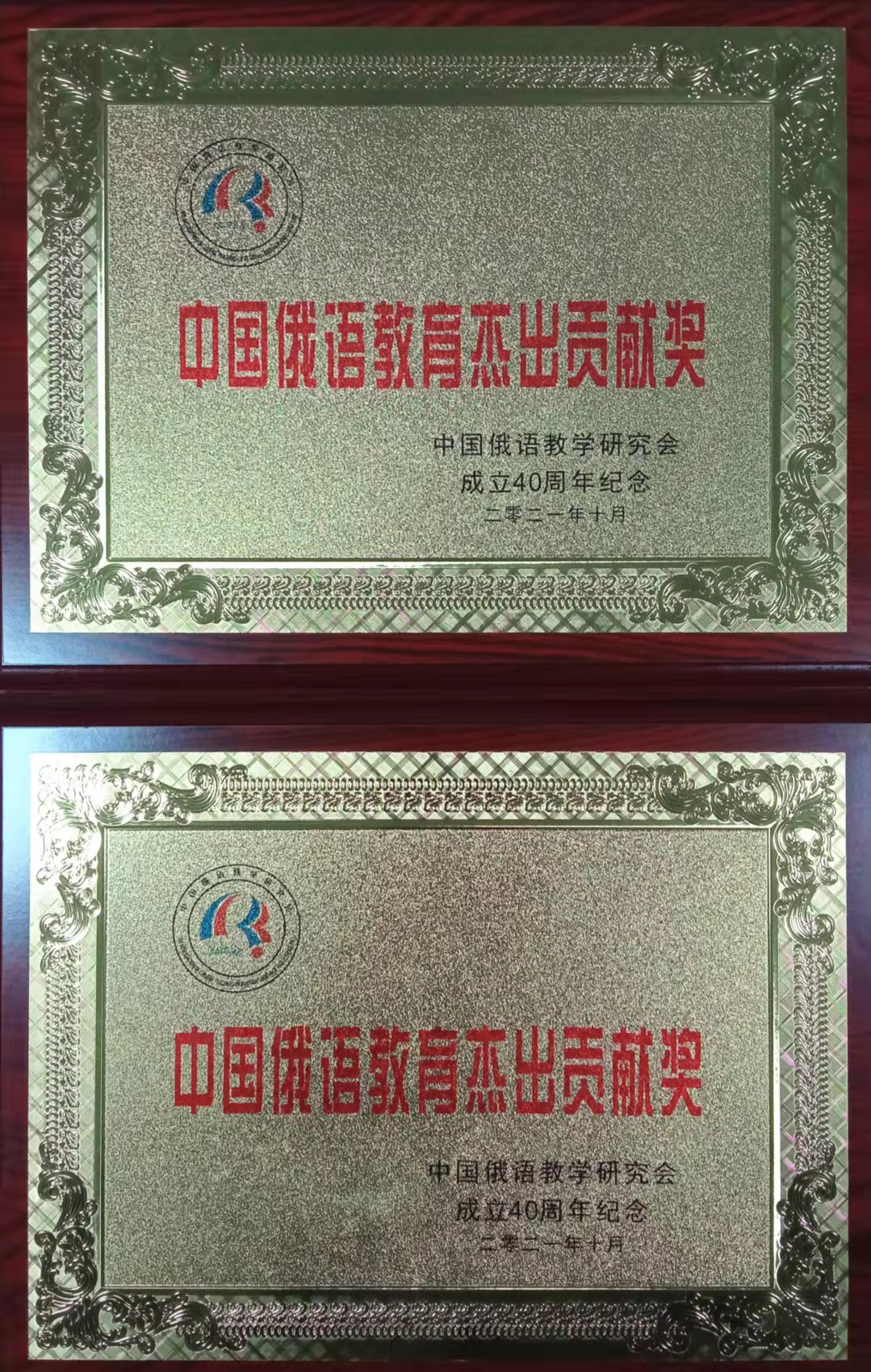 俄文系曹文学教授、方新哲教授实至名归,荣获“中国俄语教育杰出贡献奖”。