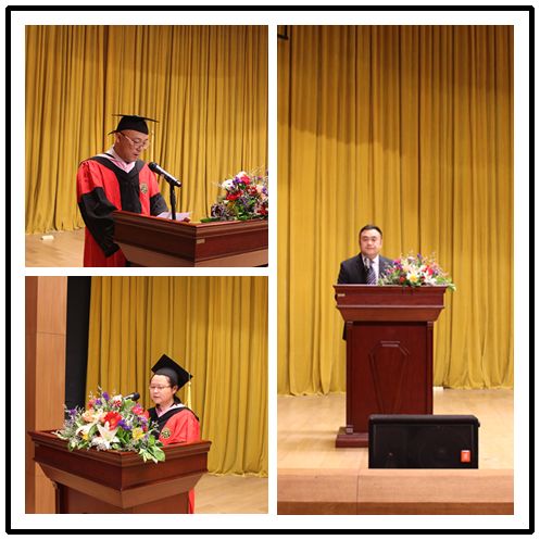 典礼在庄严的国歌声中拉开帷幕。副院长胡建军副教授、张玫玫教授分别宣读获得学士学位和硕士学位的毕业生名单。周异夫院长、胡建军副院长、张玫玫副院长为本科生和研究生毕业生授予学士、硕士学位并颁发学位证书。随后,毕业生代表孟天兰、范慧杰发言,表达了对母校的感激之情,对同学老师的不舍之情;教师代表柳晓东老师发表致辞,为毕业生们送上了临别的叮咛和温暖的祝福。