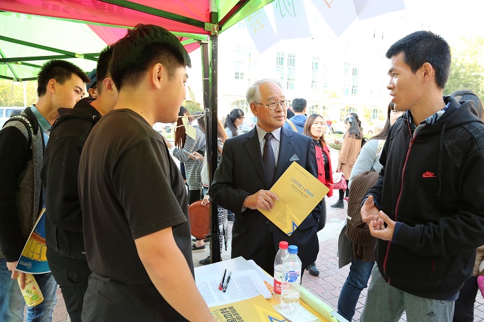 揭牌仪式由周异夫主持。刘德斌、高桥耕一郎、大泽勉和王宇先后致辞。刘德斌简要介绍了我校的对日交流情况,希望长春“中日交流之窗”能够成为促进两国青少年交流、传播两国文化的窗口,推动两国民间友好交流;高桥耕一郎期待长春“中日交流之窗”能够在长春市民和各高校师生的支持下更好地发挥作用;大泽勉高度评价了91自拍