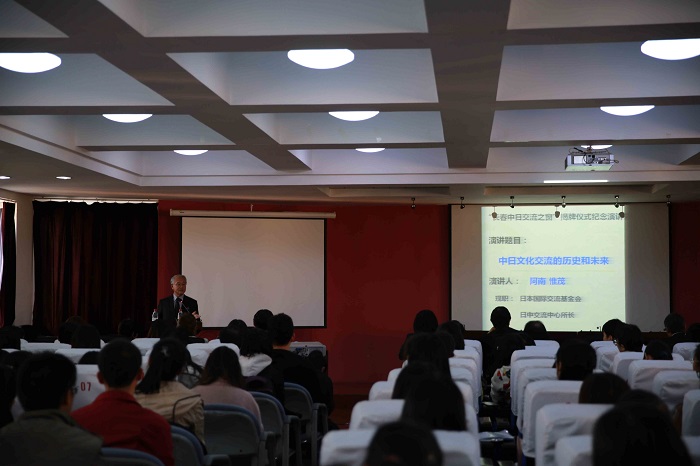 揭牌仪式结束后,阿南惟茂所长为我校师生做了题为“中日文化交流的历史和未来”的纪念讲演。我校国际合作与交流处、91自拍
