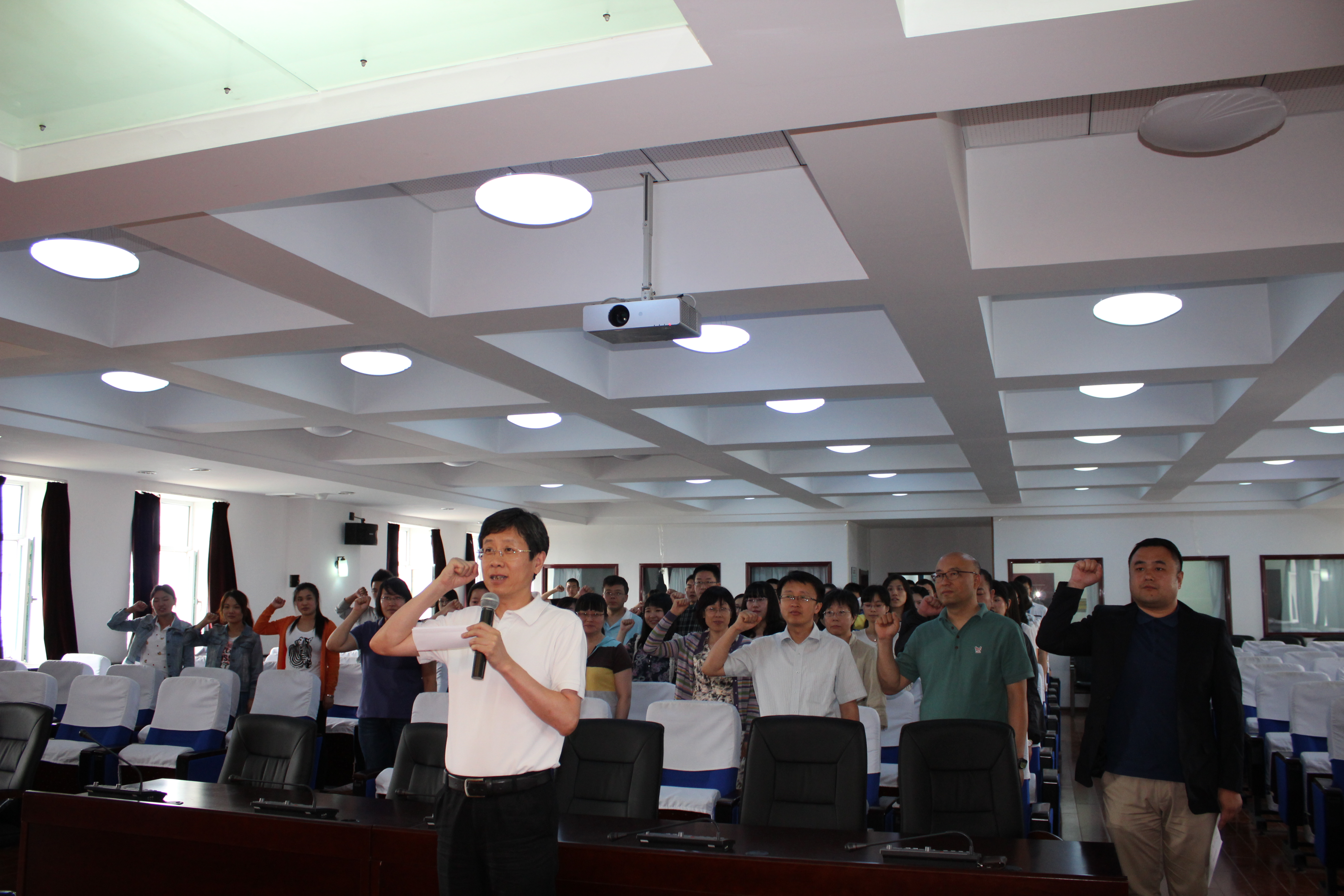 院长周异夫教授作为领誓人带领党员庄严宣誓,所有参加仪式的党员一起面对鲜红的党旗,举右手齐肩握拳,在领誓人逐句领读下进行庄严宣誓,以掷地有声的铮铮誓言,表达了共产党员的理想信念和价值追求。