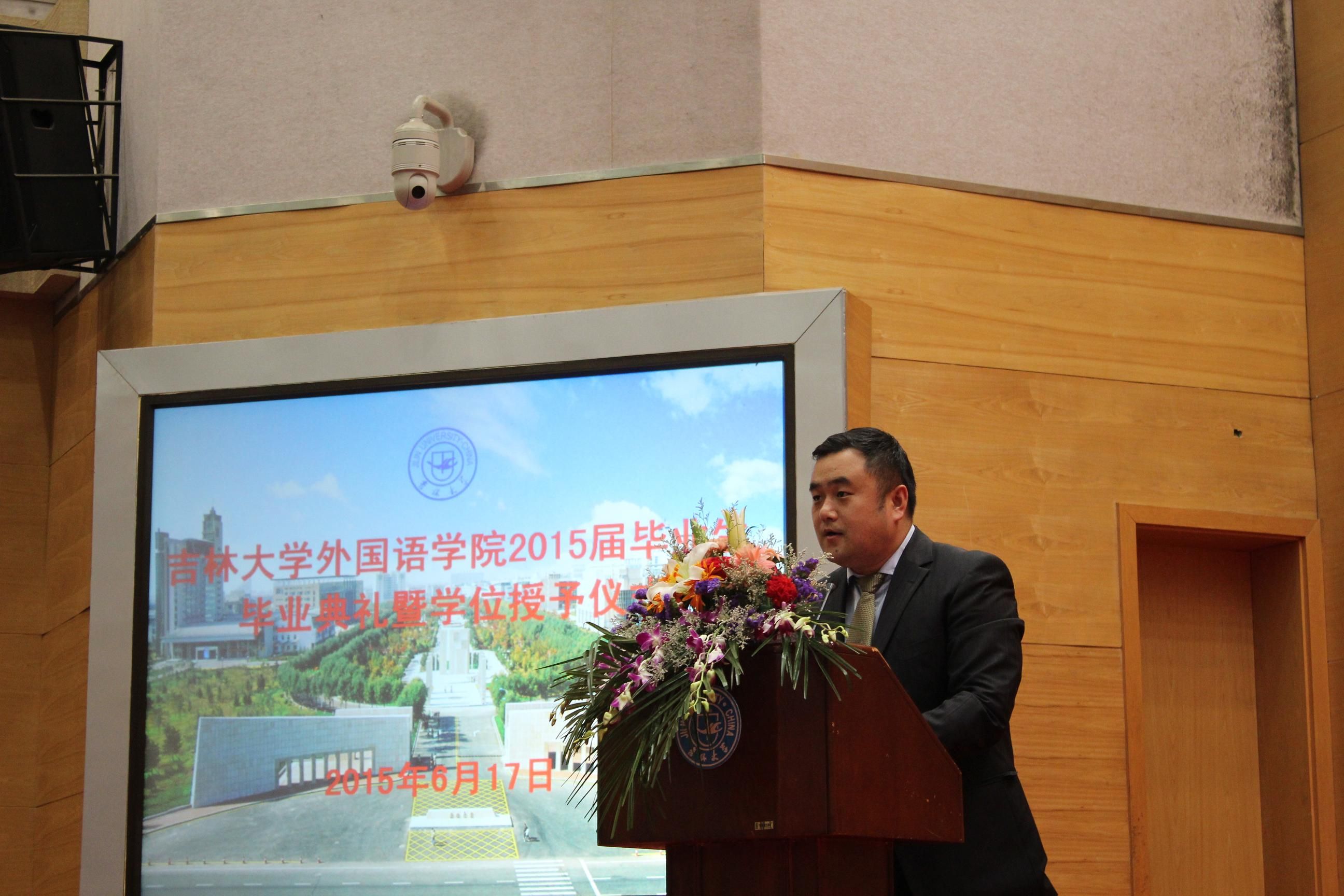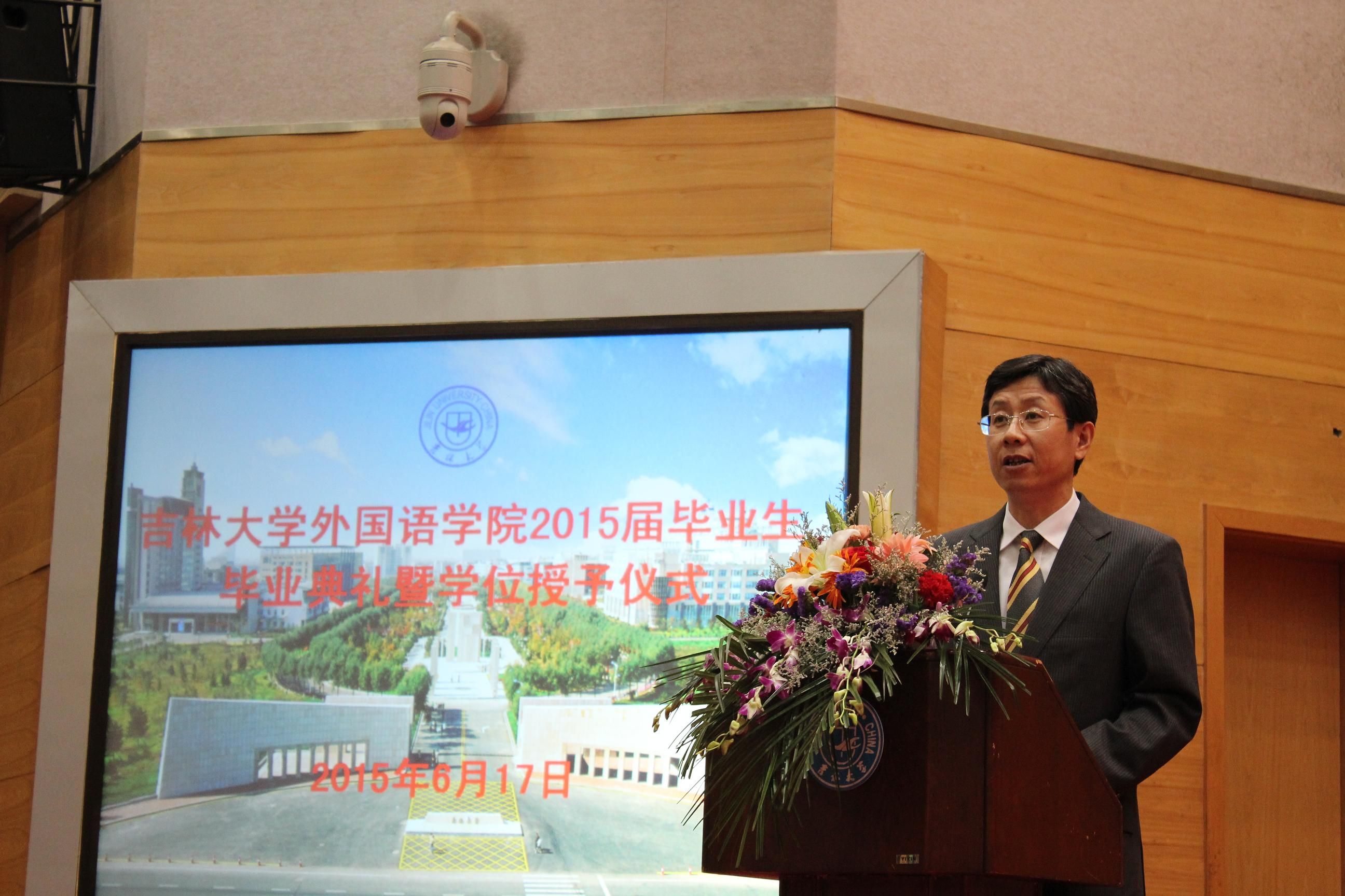 最后,院长周异夫教授发表了热情洋溢的讲话。他对圆满完成学业的毕业生们表示祝贺,对全院教职员工的辛勤工作表达了敬意,同时对离校在即的弟子们提出了殷切希望:第一,要以坚韧的意志,百折不挠,乐观面对失败,昂扬向上,锐意进取,成为社会精英;第二,要以持之以恒的态度,不忘学习,坚持锻炼,强健体魄,健全人格;第三,要以勇于担当的胸怀,心怀天下,薪火相传,不但做“中国梦”的践行者,更是“中国梦”的见证者。同时,周院长希望同学们能够始终关注母校、热爱母校,把兼容并包、积极进取的吉大外院精神传承并发扬光大。师生们无不为院长的精彩讲话所感动,热烈的掌声经久不息。在91自拍