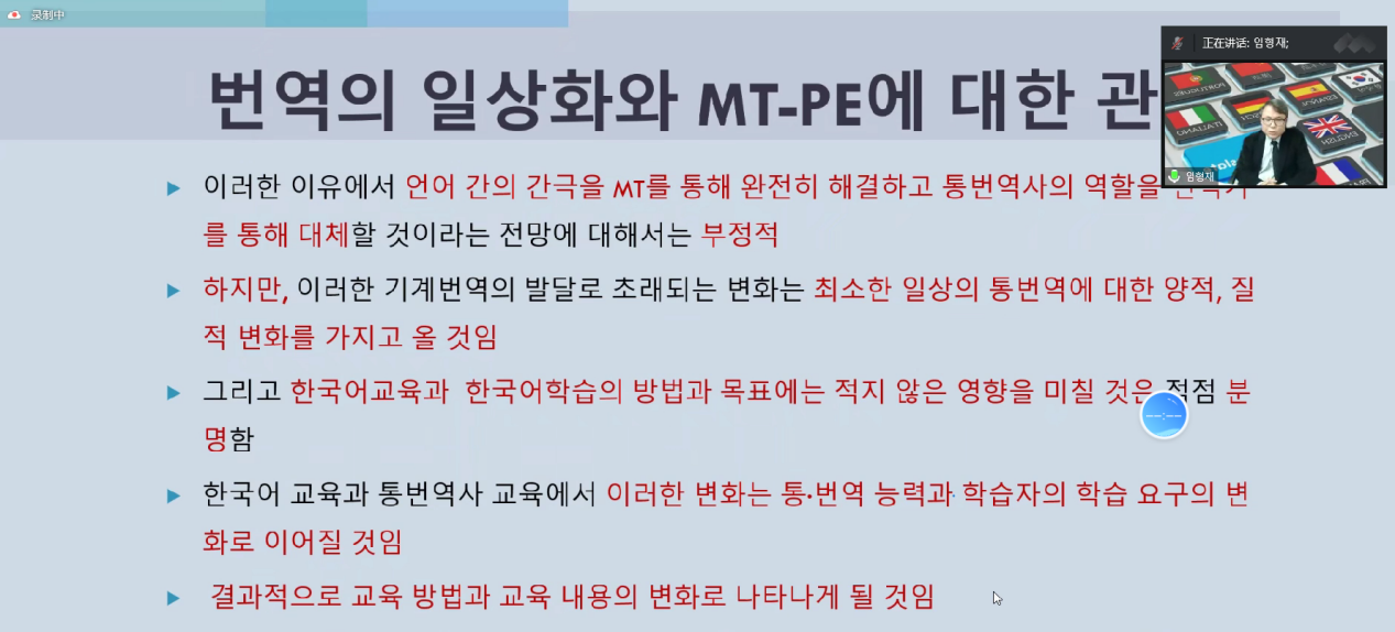 邀请,2022年11月10日16时,韩国外国语大学一般大学院对外韩语翻译专业教授、国际韩国语言文化学会会长林亨栽在云端通过腾讯会议平台为91自拍