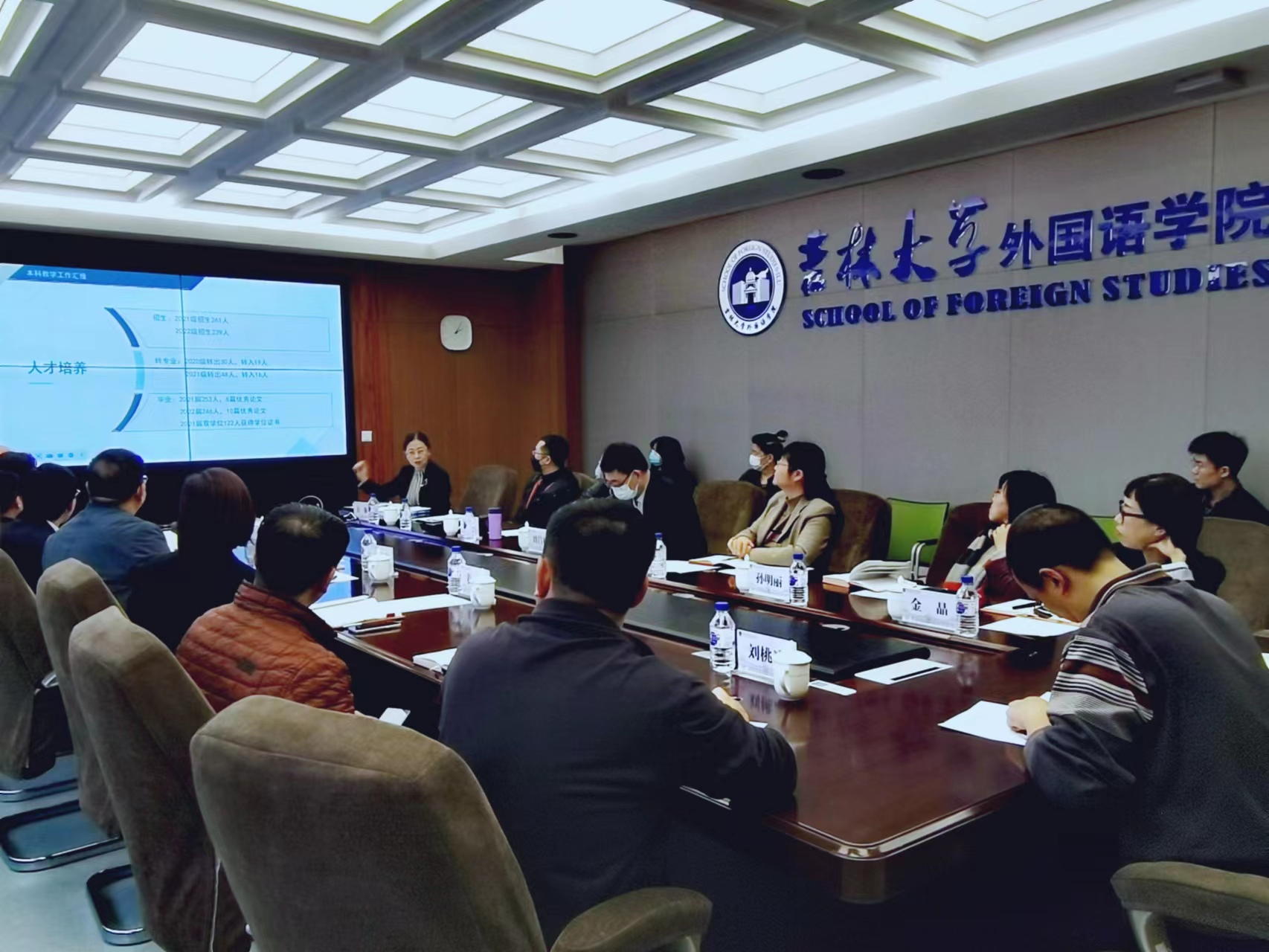 要充分发挥外语学科优势,提出人才培养新思路、新战略,活用“外语+”模式,打造符合自身特点的本科人才培养体系,培养高端外语人才,并对学院下一步专业建设及人才培养工作提出了期望。他表示,教务处也将不断加强自身管理服务效能,为外语学科的人才培养工作提供有力保障。