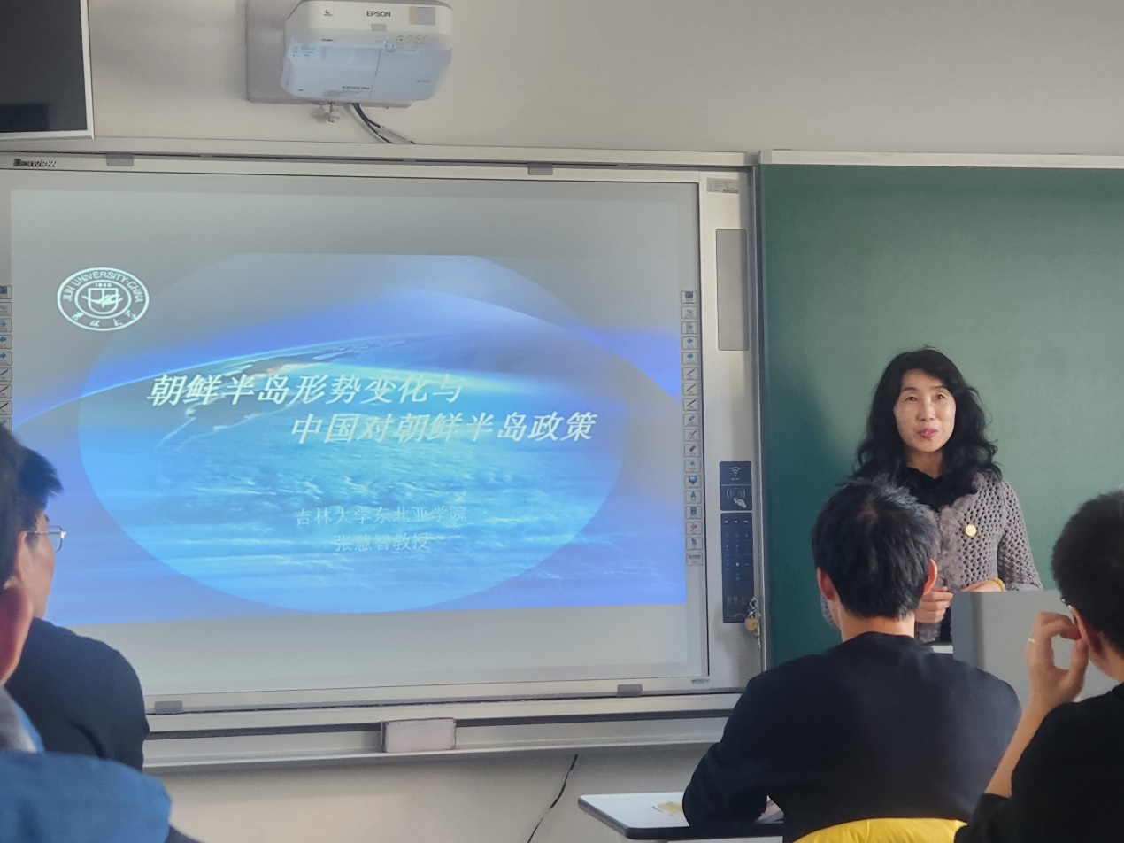 512教室举办了以“朝鲜半岛形势变化与中国对朝鲜半岛政策”为主题的讲座。张慧智教授就目前朝鲜半岛形势变化进行深入分析,并对中国对朝鲜半岛两个国家的政策方向进行阐释,使同学们更好地掌握关于朝鲜半岛问题的基本情况,并加深对半岛问题的理解和认识。