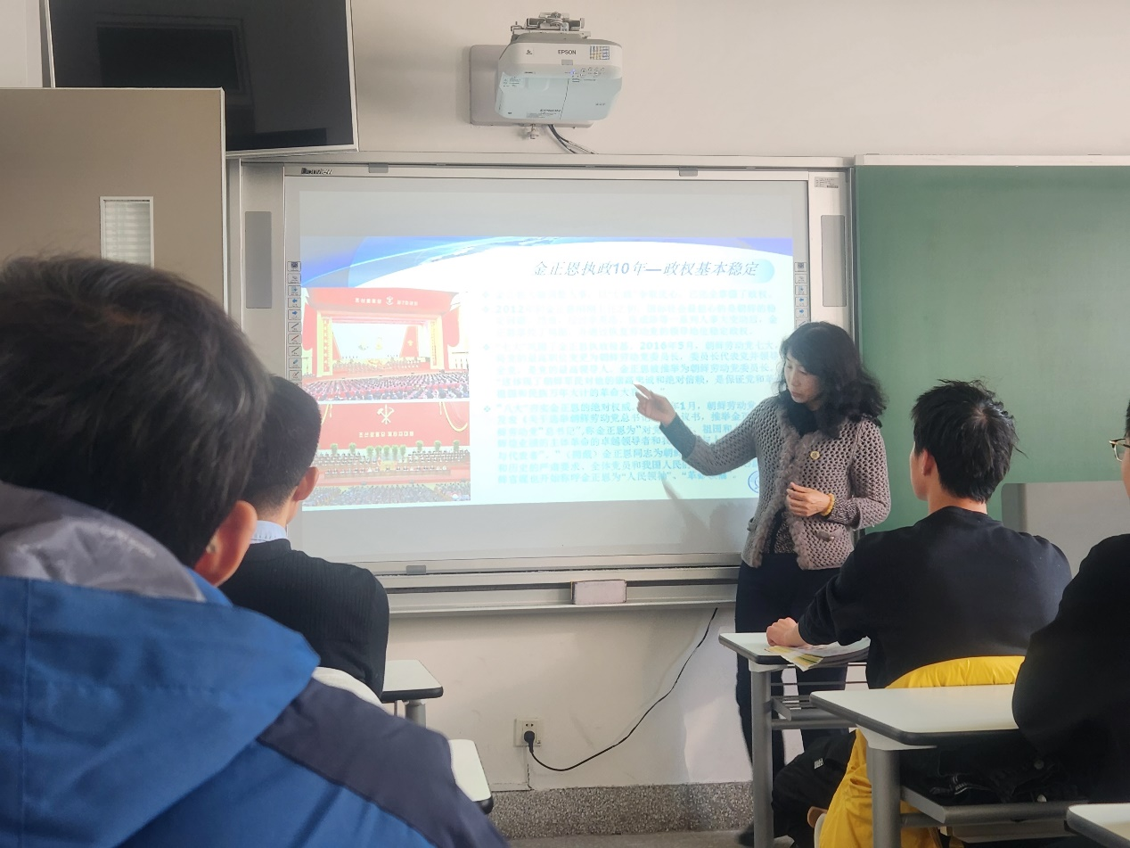 其次,张教授对于朝鲜对半岛形势的影响进行了介绍。张教授对朝鲜的政治、经济、文化、军事政策以及核问题进行了由浅入深、从表面到深层次的分析和讲解,并与中国的发展进行对比,进一步增强同学们对朝鲜各项政策的理解。张教授还通过与同学互动讨论的方式分析了中国对朝鲜的态度以及政策,加深了同学们的印象。