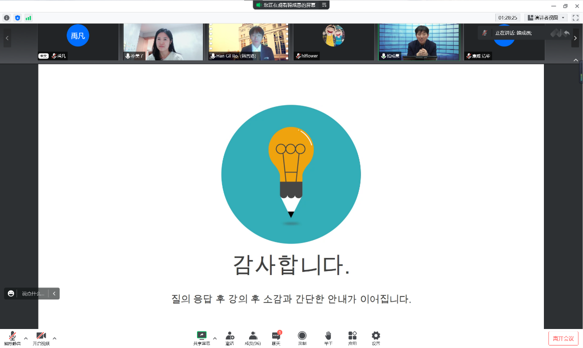讲座结束后,学生们通过对话交流方式向韩成愚教授提出问题,韩教授对这些问题进行了耐心细致的解答。此次讲座共持续90分钟,并且是韩成愚教授在91自拍