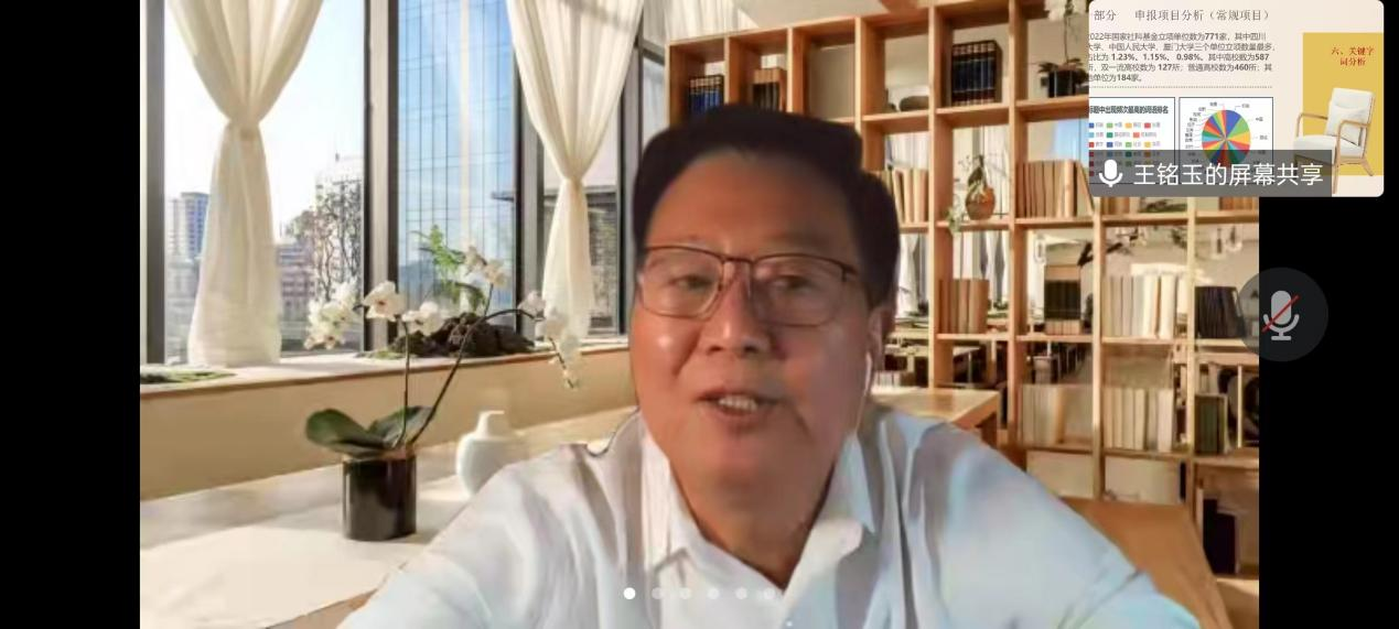 在谈及项目评审的话题时,王教授则通过对盲评及会评两大环节的细致讲解,明晰了评审策略、评审程序等问题,比较了重点项目、自选项目、非共识性项目、跨学科、重大项目等项目评审的异同。最后王教授结从自身经历出发,以他本人2022年国家社科基金立项项目为例,分享了他在研究背景、为何研究、研究什么、如何研究及预期成果共五个方面的心得体会。