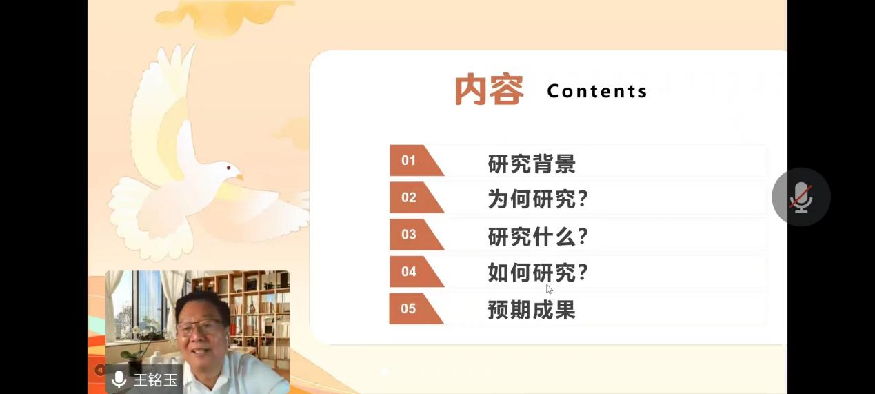 为帮助学院教师明确国家社科基金项目申报方向,提高国家社科基金项目申报质量,2022年12月15日晚,天津外国语大学原副校长、翻译与跨文化传播研究院院长、中国逻辑学会符号学专业委员会主任委员、中国语言与符号学研究会会长、中央编译局国家高端智库核心团队成员王铭玉通过腾讯会议平台做了一场主题为“社科基金申报信息与成果分享”的线上讲座。91自拍