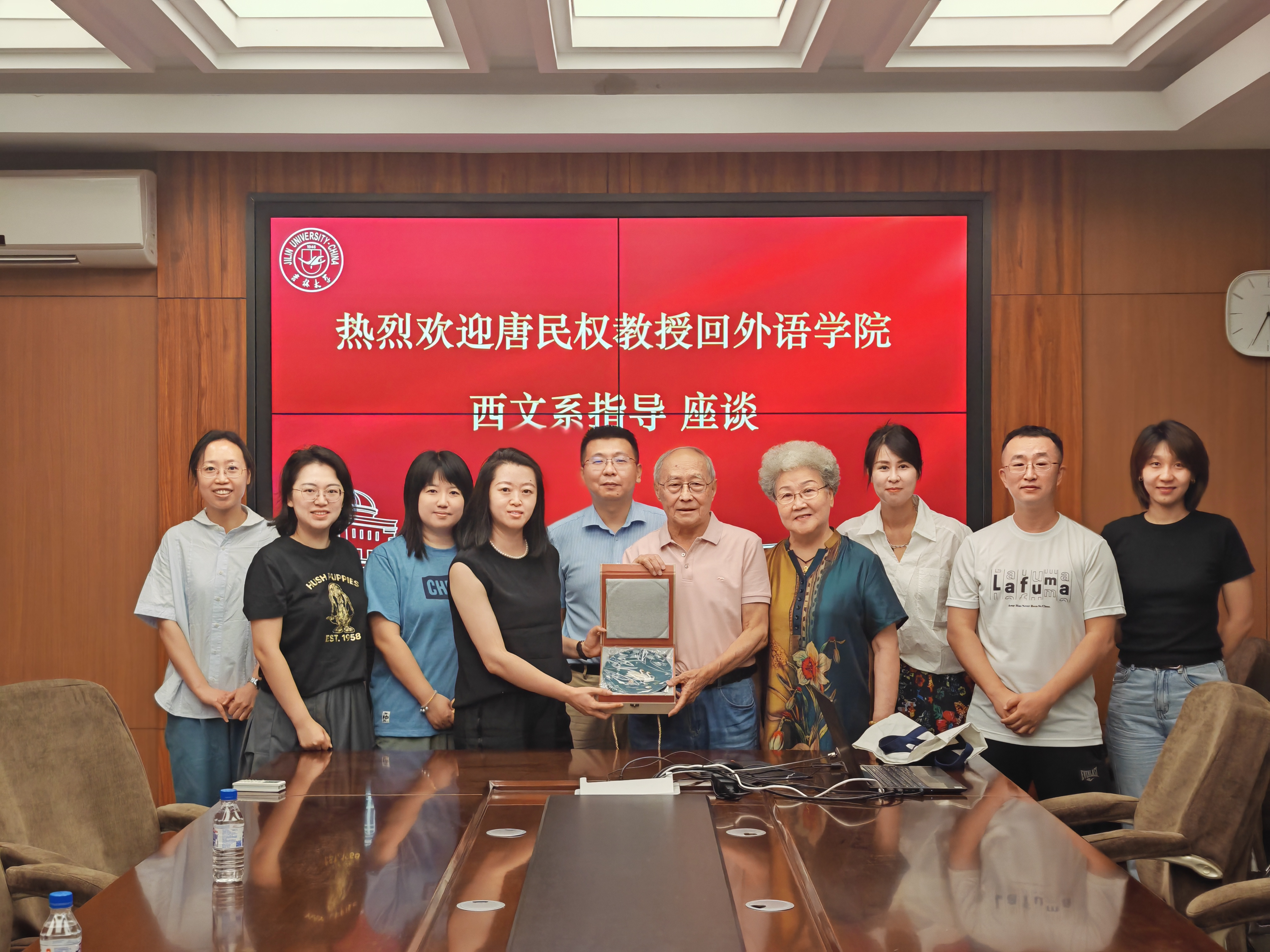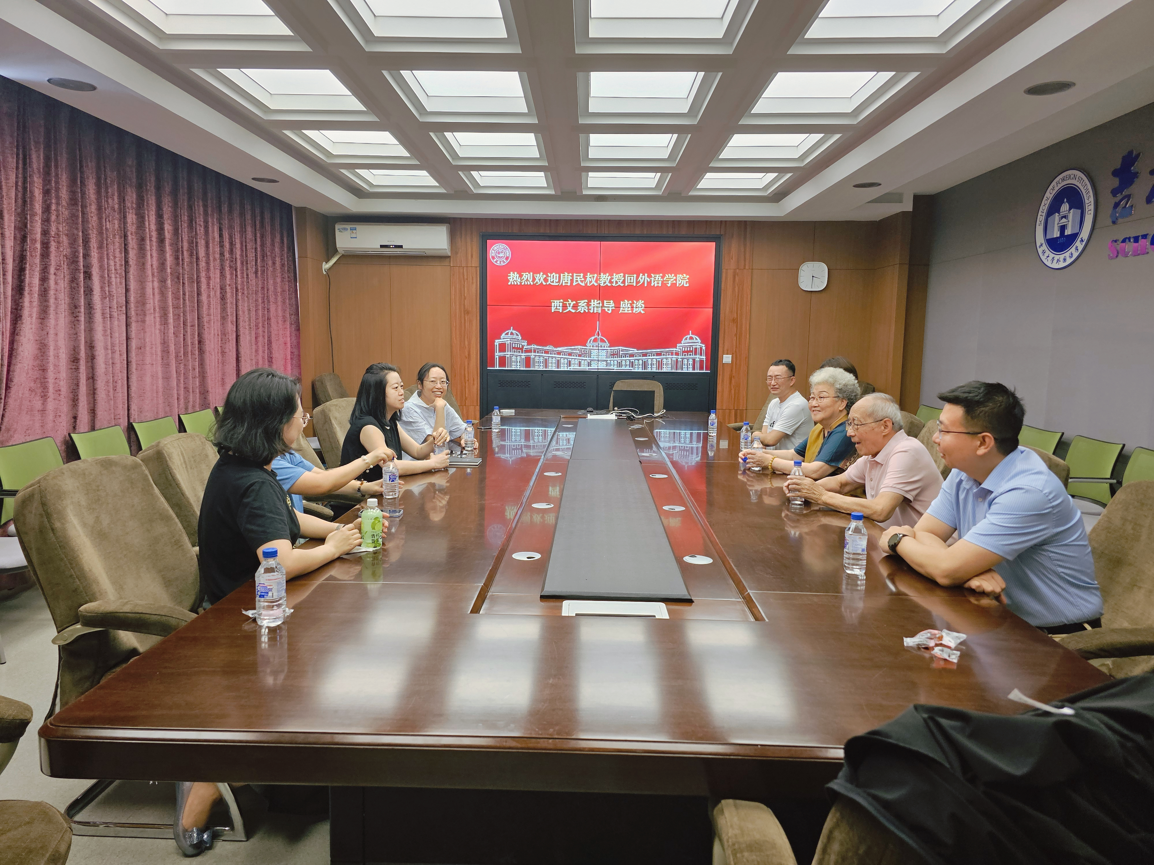 西班牙语学科开创与建设、师资培养、教书育人等方面所做出的重要贡献、奠定的坚实基础、形成的育人特色、培育的学科精神与传统。唐民权教授回到学校、来到学院跟系里教师座谈、指导,给了我们新的勉励和鼓舞,我们将继续以先生们为榜样,守初心,践使命,扎根东北,爱校荣校,兴教育人,以更高要求、更高标准为建设好91自拍