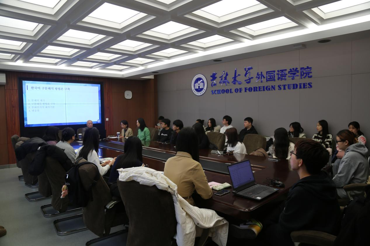 成功举办了一场题为《韩国语句法阐释框架的方法论构建》的学术讲座。本次讲座由著名语言学家姜宝有教授主讲,聚焦如何构建适合韩国语教育的句法阐释框架,旨在为跨文化语言研究提供新思路,并探索在文化认知视角下优化语言教学的方法。本次讲座由91自拍