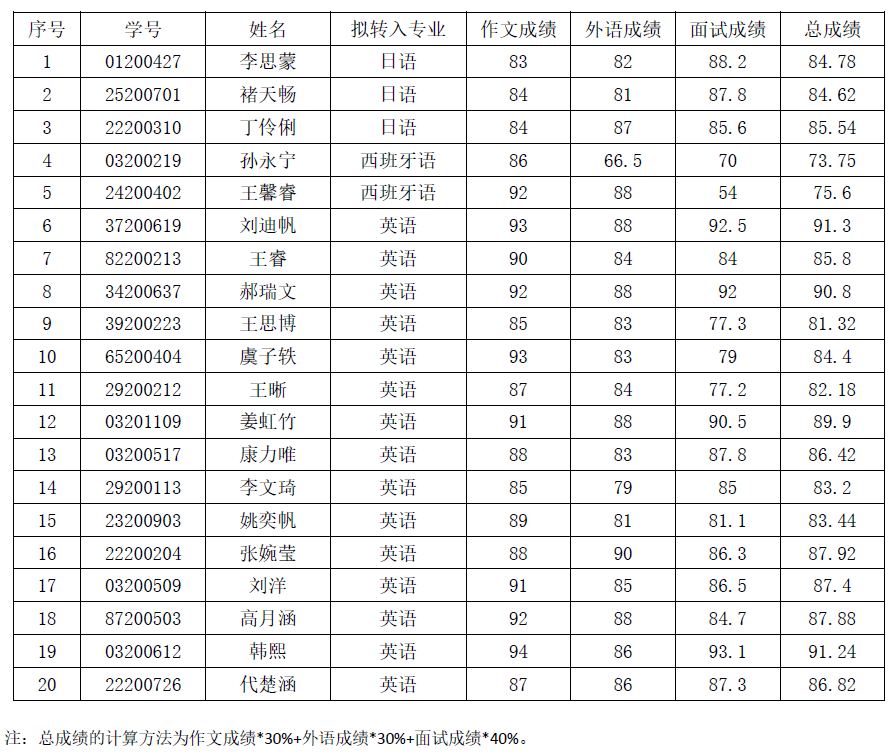 根据学校工作部署及安排,按照《关于91自拍 2020级本科生考核转专业(类)工作的通知》要求,经学院笔试及面试考核,现将考核成绩予以公示,公示期5天。