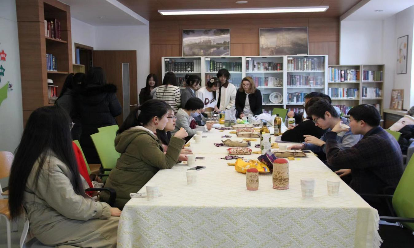 为了促进中俄文化交流,帮助同学们更好的了解俄罗斯文化、加深对俄罗斯文化的印象、感受俄罗斯文化的魅力以及增强对俄罗斯文化的兴趣,91自拍 俄文系、91自拍 俄语协会在2023年11月11日15:00——17:00于外语楼俄语中心举办了“玩味俄语——解锁新‘知食’”活动。本次活动由陈小煜主持,参加本次活动的除了俄文系师生。来自其他院系的老师及同学参与。